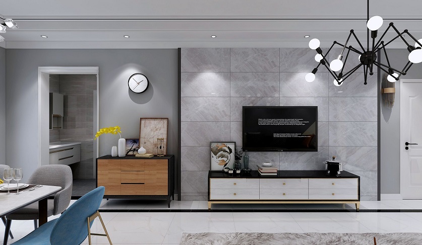 現(xiàn)在大多數(shù)客餐都是一體式的,能在這兩個空間開展半隔斷安分,然后再隔斷上邊開展電視背景墻設(shè)計,這樣既能置放電視機,也可以區(qū)分空間,非常的不錯。